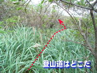 | 雨ヶ池分岐から緩やかなススキのブッシュ登山道を下ると急峻な下りになる。ロープ急坂もある。登山道は滑りやすい粘質土で雨の日は泥濘みや滑りで苦労するだろう。急峻な登山道から鞍部へ、ほぼ平坦に近い登山道からやや急な登りと下りと変化に富んだ登山道になる。急峻な下りの登山道は宮崎北部の山の登山道を思い出す。急峻でも滑りや転落に注意し慎重に降りれば問題ない。想像よりも楽に下れた・・・・ここまでは? |