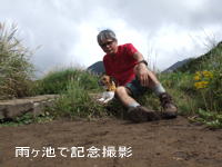 | 小池から灌木林やススキブッシュの緩やかな登山道を下ると「直進20m登山道に出ます」の標識がある。意味のない標識である。設置するなら分岐点に設置してと思いながら暫く歩くと雨ヶ池西端の登山道分岐に出会う。左折で長者原、右折で雨ヶ池だ。とりあえず雨ヶ池に立ち寄ることにする。4年ぶりの雨ヶ池だ。懐かしさに胸が締め付けられる。4年間、いろいろありました。辛いことが多かったかな。暫し休憩、レットもお疲れモードだ。給水、骨形ガムを与え雨ヶ池を眺め、記念撮影。 雨ヶ池の話 雨ヶ池は雨が降らないと水が溜まらないことから命名された。雨ヶ池の裏、厳密には西側に水を蓄えている小池があり、裏雨ヶ池と呼ばれている。 ■登山口(8:07)→(9:03)硫黄山道路分岐→(9:11)硫黄山道路合流→(9:16)砂防ダム分岐→(9:38)すがもり越(9:57) →(10:25)西峰(10:32)→(10:52)本峰(11:03)→(11:08)W峰(11:09)→(レット捜索8分?)→(11:28)南峰(12:05) →(13:00)休憩(13:10)→(13:26)雨ヶ池(13:46) |